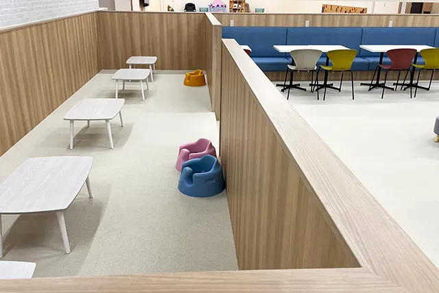 キッズパークレインボー内に飲食店はございませんので、お客様でご用意の上、こちらのスペースをご利用ください。