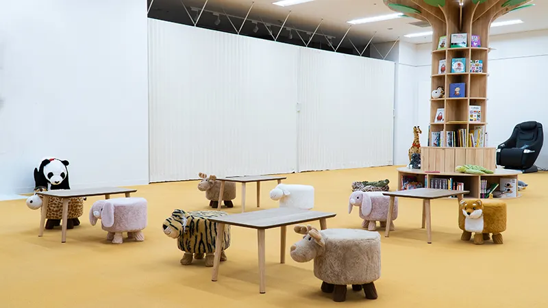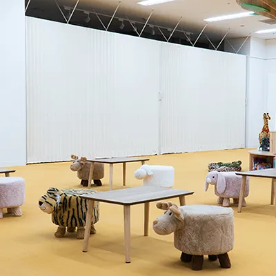 キッズパークレインボー内に飲食店はございませんので、お客様でご用意の上、こちらのスペースをご利用ください。